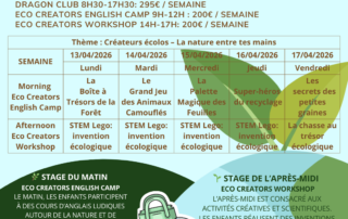 À l’École Montessori de Villeurbanne, l'équipe de Dragon Kids accueille vos enfants la première semaine de chaque vacance scolaire pour un stage 100% en anglais ! Au programme : Jeux, découvertes et ateliers [...]